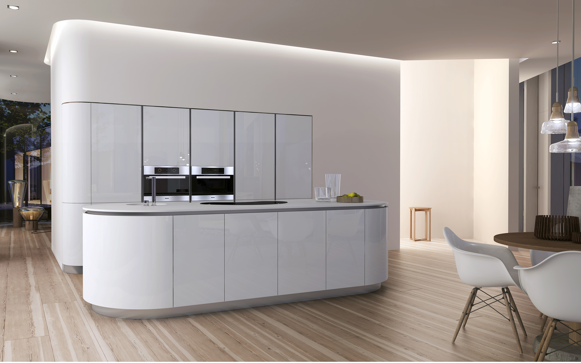Designová kuchyně ELITE v oblých tvarech. Kulaté tvary u nábytku představují nejpreciznější řemeslo a um.