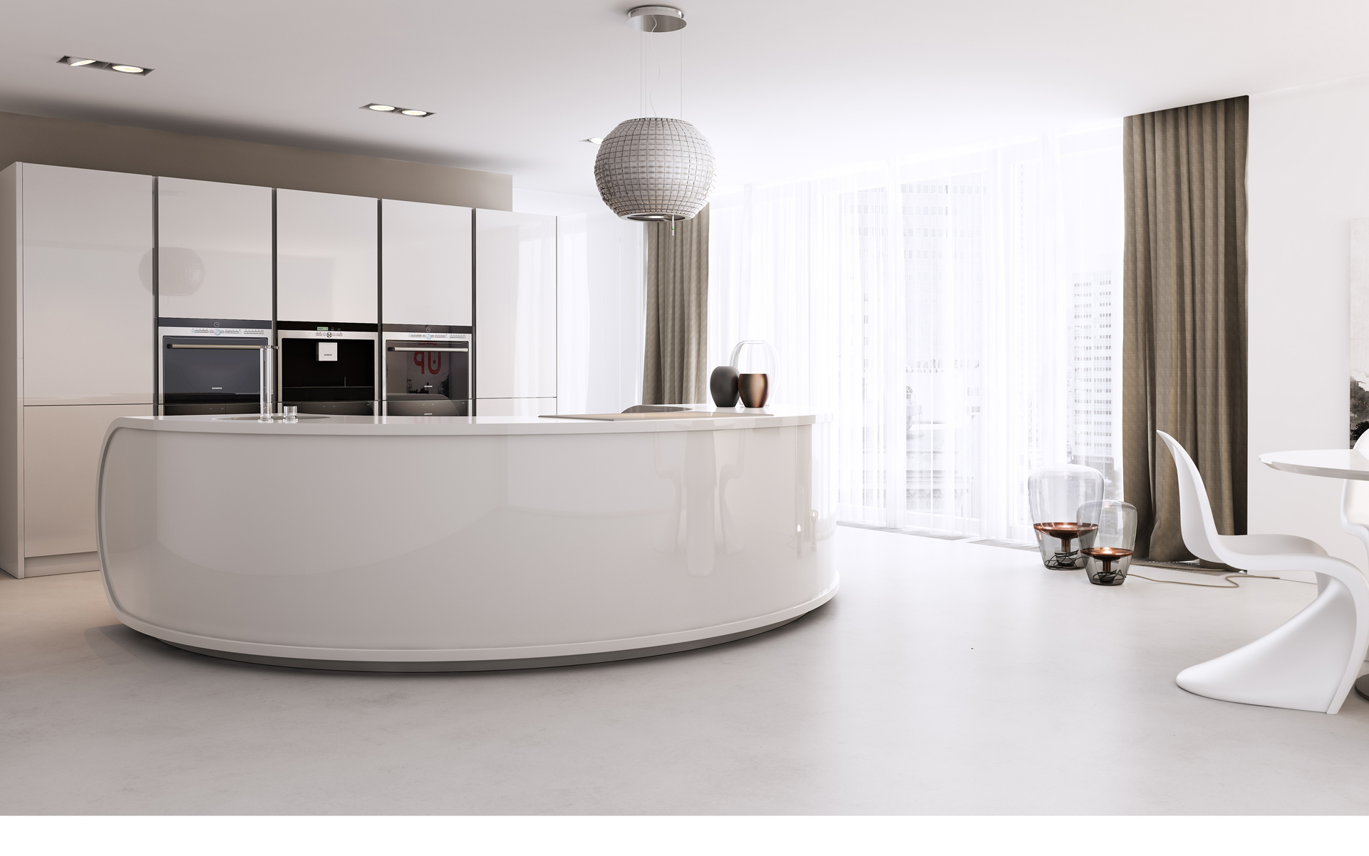 jako šperk působí tento typ ostrůvku v interiéru. Bílé lesklé plochy použitím dokonalého 7vrstvého laku rozzáří celý interiér.